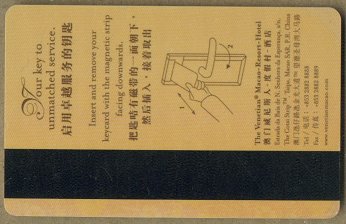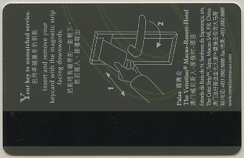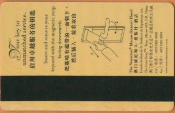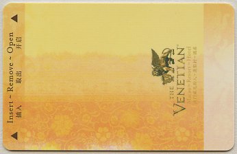 Venetian Macao, P.R. China Paiza (in gold foil) / light gray (dark lettering) No manufacturer mark Vertical / Wide / RKG #F00007 Images courtesy of Gerhard Jung |