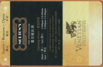 Venetian Macao, P.R. China Morton's The Steakhouse No manufacturer mark Vertical / Wide / RKG #F00013 Images courtesy of Gerhard Jung |