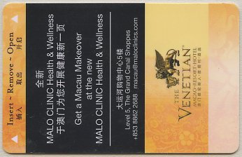 Venetian Macao, P.R. China Malo Clinic Health & Wellness No manufacturer mark Vertical / Wide / RKG #F00016 |