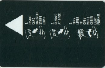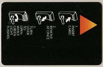 Hard Rock Hotel & Casino NV, Las Vegas Lightning bolt / black key, red stripe / yellow "Hotel" orange arrow on back (arrow in correct direction on back) No Manufacturer Mark Vertical / Wide / RKG #02117 Images courtesy of Larry & Alice Kopp |