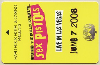 Hard Rock Hotel & Casino NV, Las Vegas Sex Pistols / Live in Las Vegas / June 7, 2008 No Manufacturer Mark Vertical / Wide / RKG #01778 |