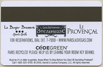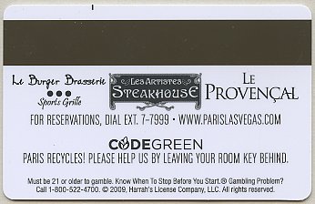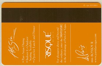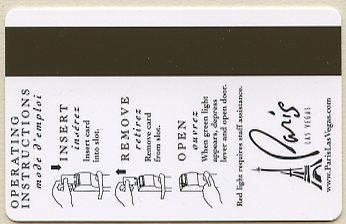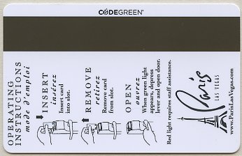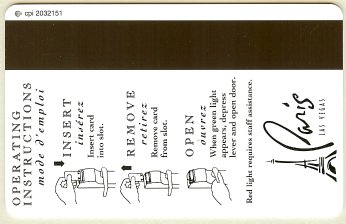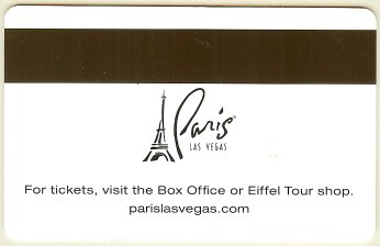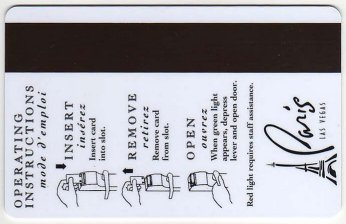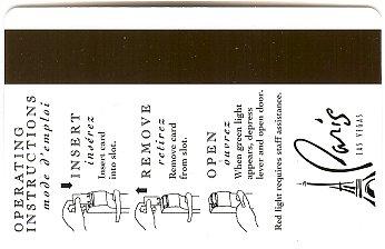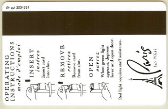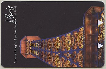 Paris NV, Las Vegas Eiffel Tower (gold card - black print) CPICA 15917 11/99 / TESA Entry Systems, Inc. Vertical / Wide / RKG #01920 Images courtesy of E.A. |