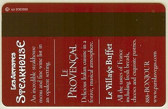 Paris NV, Las Vegas Manilow No Manufacturer Mark Horizontal / Wide / RKG #02286 |