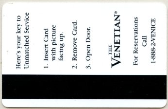 Venetian NV, Las Vegas Passage / Security Starts With Authentication Key Marketing conventionkeycards.com Horizontal / Wide / RKG #00126 |
